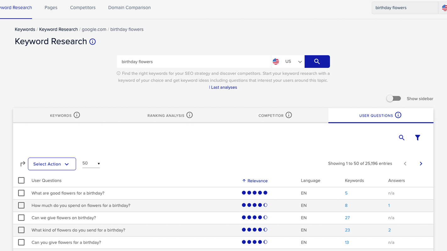 - Get comprehensive keyword data
